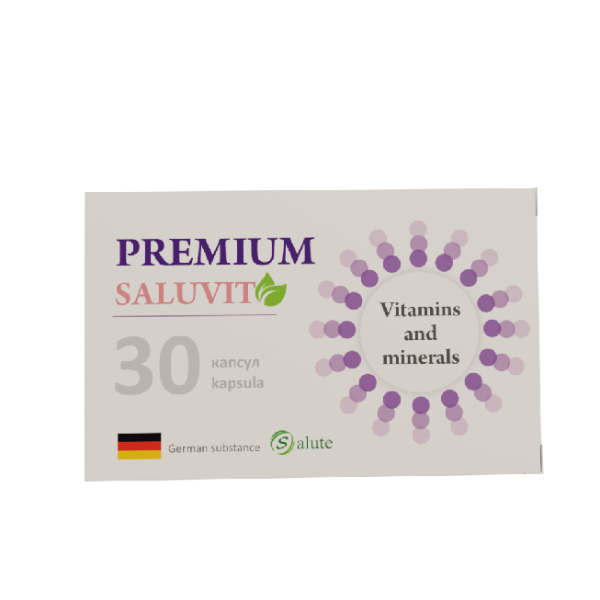 Premium Saluvit — organizmni kundalik qo‘llab-quvvatlash, vitaminlar va minerallar tanqisligini to‘ldirish hamda umumiy hayotiy ohangni oshirish uchun yaratilgan murakkab multivitamin-mineral preparat.